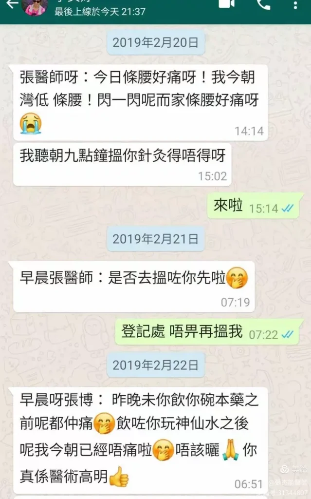 主訴:早上彎腰時腰部突然出現疼痛難受, 前來求診。