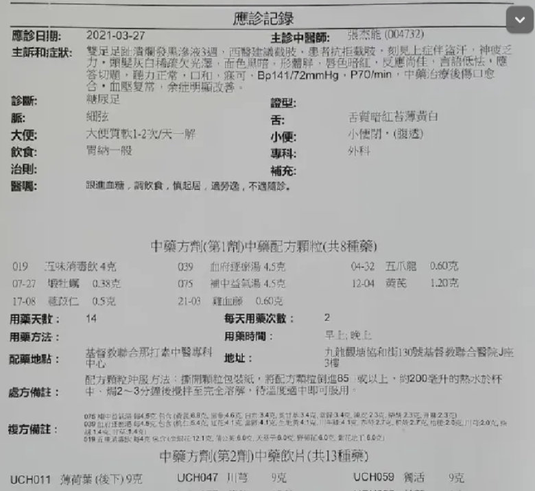 糖尿病足屬中醫消渴與脫疽範疇, 是糖尿病患者足部和腿部組織受到破壞的一種病理狀態,是糖尿病嚴重併發症之一,嚴重影響糖尿病患者的生活質量。目前西醫尚無特效藥治療,而中西醫綜合治療取得滿意療效。